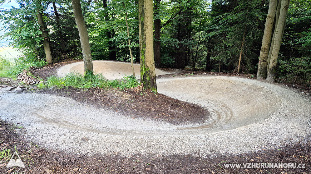 Trailpark Bukovka aktuálně nabízí 4 základní traily - modrý pro děti a začátečníky, červený pro ty zkušenější, černý pro pokročilé a stoupací, na kterém je obousměrný provoz. Také tu najdete super pumptrack a minitraily pro úplně nejmenší. Ty ale dnes vynecháme, ty jsme si užili už v minulosti na odrážedle a menším kole. My se dnes pustíme do modrého trailu, který slibuje nenáročnou a pro děti bezpečnou trasu s boulemi a klopenkami. ![]() Auto parkujeme pohodlně na parkovišti u spodní lanovky, v půjčovně kupujeme lístek, takticky se vyhýbáme skákacímu hradu a rovnou míříme na lanovku. ![]() Pod lanovkou probíhá čilé rozšiřování černého trailu, který nevypadá vůbec špatně. Na ten si ale ještě pár let počkáme. ![]() Za pár minut už jsme nahoře a vyhlížíme začátek trailu. Dříve začínal o něco níže pod lanovkou, teď už je start přimo u lanovky, kde jezdce čekají čerstvě vyshapované klopenky a esíčka. ![]() Nervozita je trochu znát. Oproti trailům na Kraličáku a na Travičné je tu sklon přecejen o něco větší a klopenky hned na začátku dají dítku trochu zabrat. Ale po chvíli si nakouká ideální stopu, přibrzdí si a většinu klopenek dává v klidu a s přehledem. ![]() ![]() Klopenky v lese střídají vlnité přejezdy přes sjezdovku, občas proložené většími kameny pro větší zábavu. I ty se ale dají v pohodě objet, takže pro dítě ve školkovém věku na trailu není nic hrozného. Žádné skály, kořeny, nic takového, jen příjemně vyžehlený flow. A občas nějaká ta spojovačka po lesní komunikaci, na které můžete potkat i auto, takže pozor. ![]() Ve spodní části pak ubývá klopenek a přibývá zábavného houpavého ježdění v boulích a zatáčkách. Sem tam potkáváme i nějaký ten most nebo brod přes potok. Okolo cesty by měly být i nějaké dřevěné sošky pro děti, ale popravdě je příliš nevnímáme ![]() To už ale přijíždíme zpět ke spodní lanovce, ke které dojiždíme přes dětské minitraily a pumptrack v úplném cíli. ![]() Dole už je konečně prostor i na nafukovací hrad, nějaké to občerstvení a pak už vzhůru dál za dalším dobrodružstvím. ![]() Oproti předchozím dvěma trail parkům už je tu přecejen znát trochu vyšší převýšení. V horních částech trailu můžou velké klopenky na děti působit napoprvé trochu děsivě, ale jakmile si jednu dvě projedou bez pádu, strach rychle opadá a zbytek trailu už si vyloženě užívají. Za nás super a při příští návštěvě snad zkusíme i o další stupínek náročnější trať. Trasa na mapy.cz |